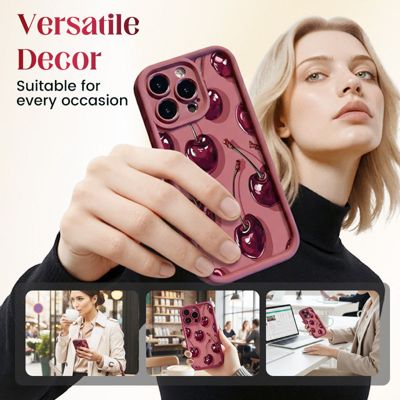 VIBRANT CHERRY PRINT - The stylish and eye-catching cherry pattern adds a touch of playful elegance to your device, making it stand out with a unique and fashionable aesthetic that reflects your personal style.