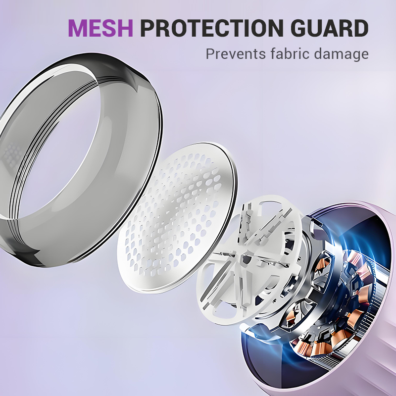 INNOVATIVE SUCTION DESIGNĀ - Utilizing an aircraft-inspired vortex design, it first gently suctions fabric pills and then precisely shaves them, ensuring thorough yet delicate lint removal.