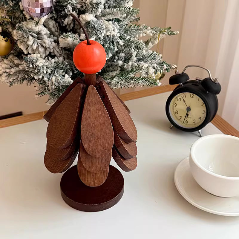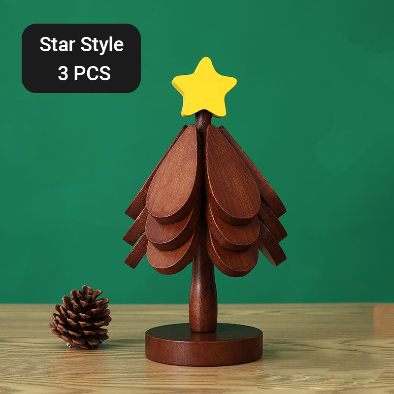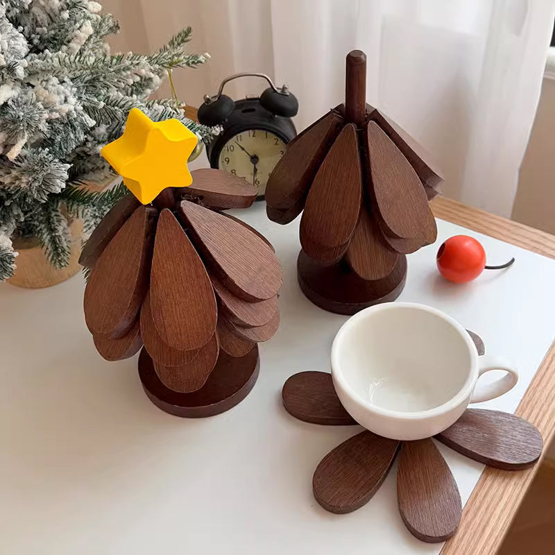 Foldable Wooden Tree-Shaped Trivet Set for Hot Dishes & Coasters