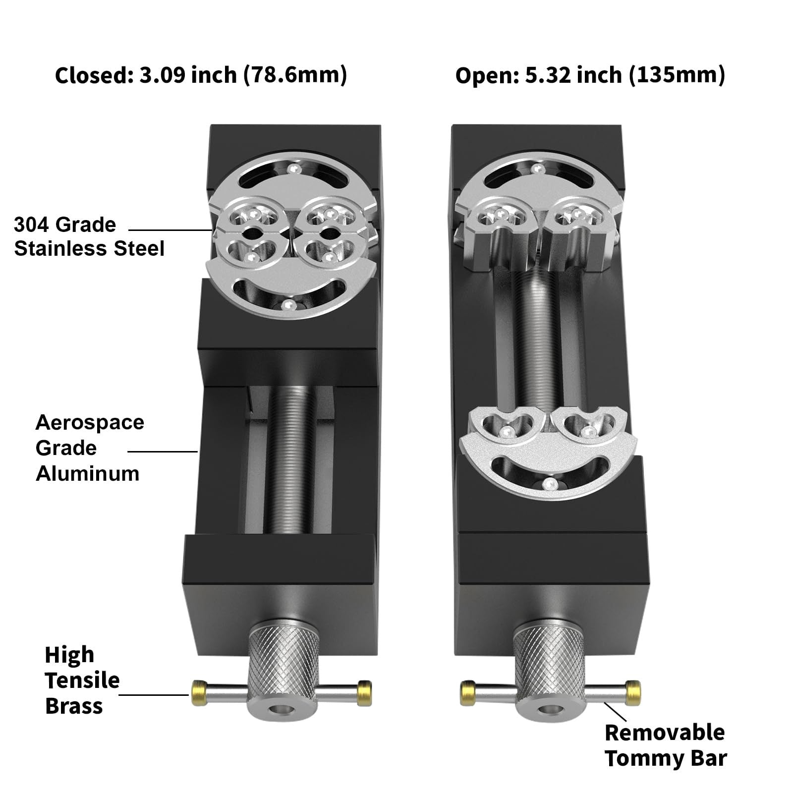 - The bench vise engineered from precision CNC-machined aerospace-grade aluminum and 304 stains steel, this heavy-duty vise is built to last.