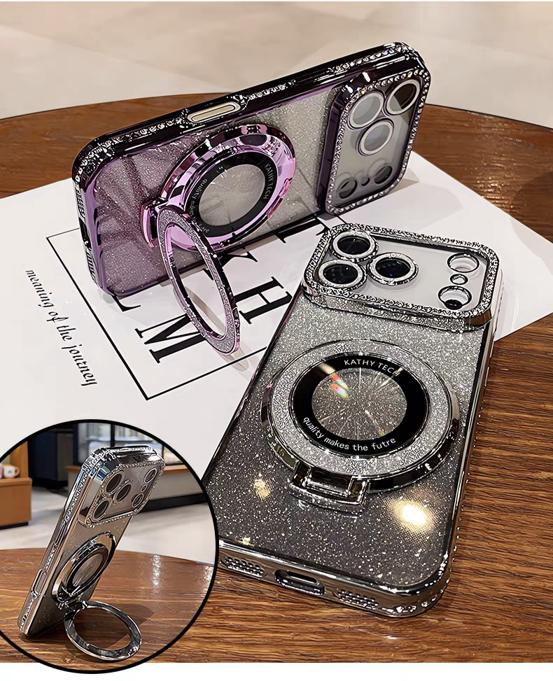 iPhone Rhinestone Glitter Magnetic Stand Premium Case