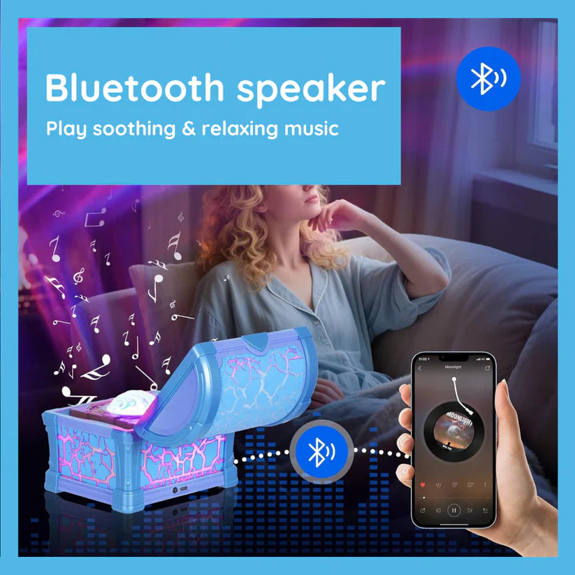 A convenient remote control is included, allowing you to easily switch between aurora colors, adjust motion speed, and select soothing white noise sounds.