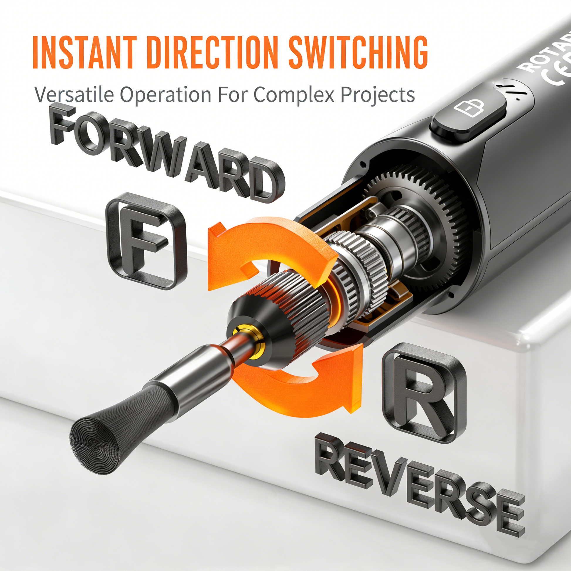 INSTANT FORWARD & REVERSE SWITCH - Seamlessly alternate between forward and reverse rotation with a simple button press. This versatile function provides greater control and flexibility, making intricate crafting and polishing tasks much more manageable.